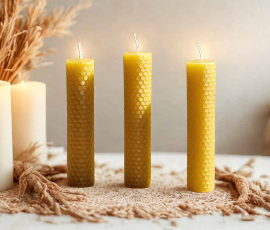 Las velas amarillas de cera de abeja potencian aún más el significado espiritual de este color. La cera de abeja, al ser un material natural, aporta una energía estable, limpia y constante.