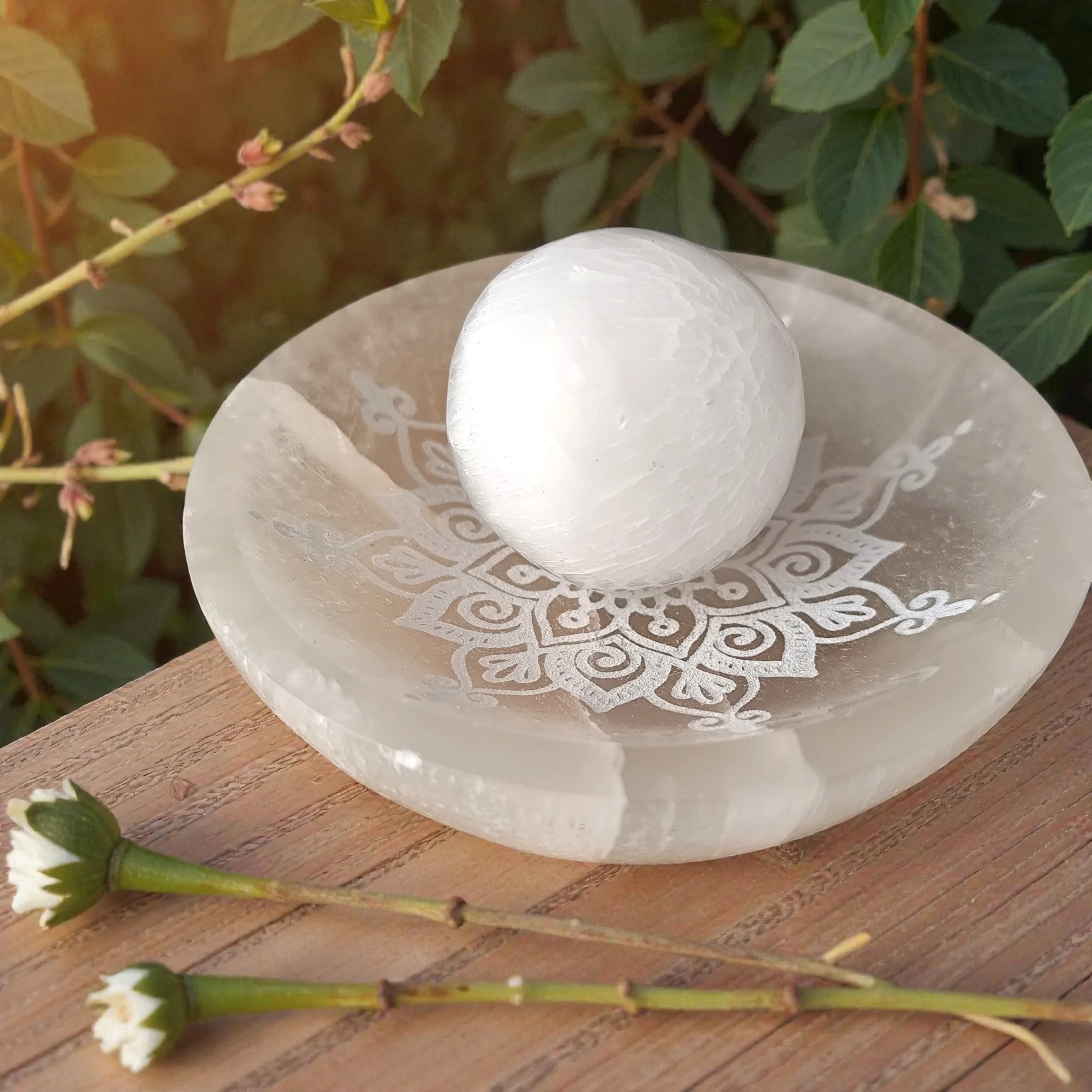 • Formato: Esfera de selenita pulida