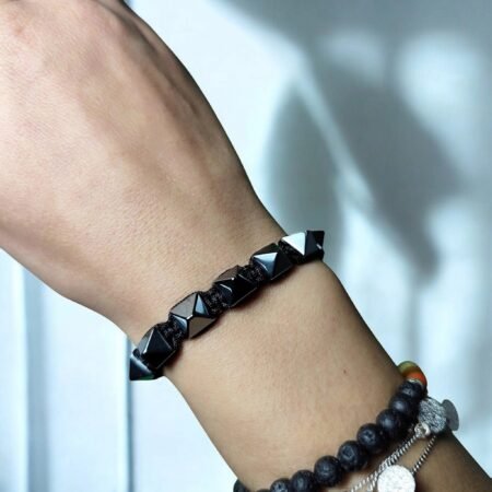 Esta pulsera canaliza la fuerza simbólica de la pirámide, una forma ancestral vinculada a la protección y la elevación espiritual. Así como la pirámide conecta la base terrenal con su vértice espiritual, la hematita actúa como un puente entre tu cuerpo físico y tus metas más elevadas, ayudándote a equilibrar tus emociones y a tomar decisiones desde un estado de calma y claridad.
