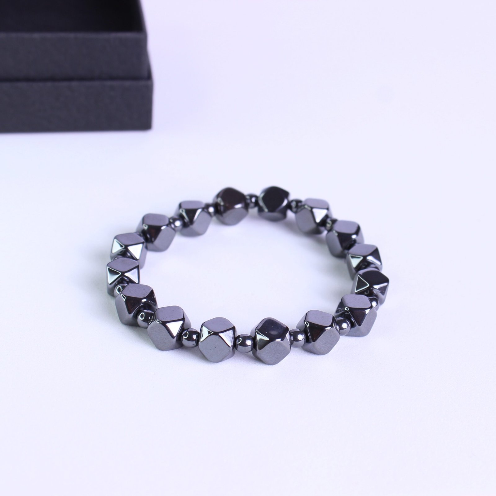 La pulsera de hematita es más que un accesorio: es un símbolo de estilo y bienestar. Su diseño minimalista y su brillo metálico la convierten en una pieza única, perfecta para complementar cualquier look. Presentada en una elegante cajita regalo, es un detalle ideal para expresar aprecio y buenos deseos.