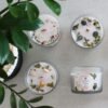 Cada vela está elaborada con una mezcla de ceras vegetales naturales 🌱, decorada con pétalos y hierbas secas para un diseño elegante y armonioso. Su luz cálida y aroma sutil convierten cualquier rincón en un refugio de paz, ideal para el hogar, spas o boutiques.